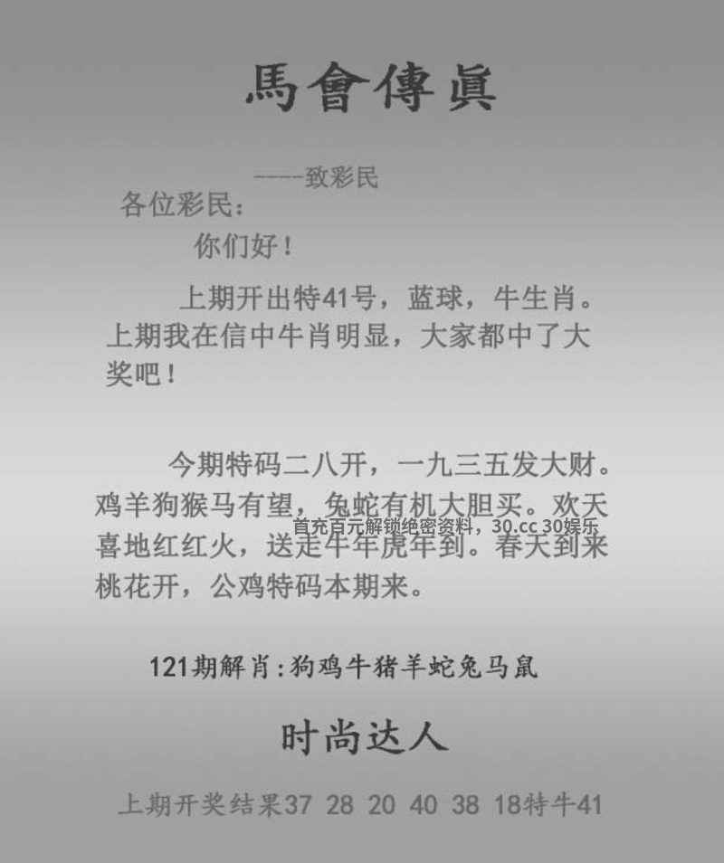 | 121期:马会传真解析: 今期特码二八开,一九三五发大财 鸡羊狗猴马有望,兔蛇有机大胆买 欢天喜地红红火,送走牛年虎年到 春天到来桃花开,公鸡特码本期来 时尚达人 解析:今期特码二八开,一九三五发大财,28虎,19猪,35羊,鸡羊狗猴马有望,兔蛇有机大胆买,明肖鸡羊狗猴兔蛇,欢天喜地红红火,送走牛年虎年到,明肖牛虎,春天到来桃花开,公鸡特码本期来,明肖鸡。 综合:虎猪羊鸡狗猴兔蛇牛 |