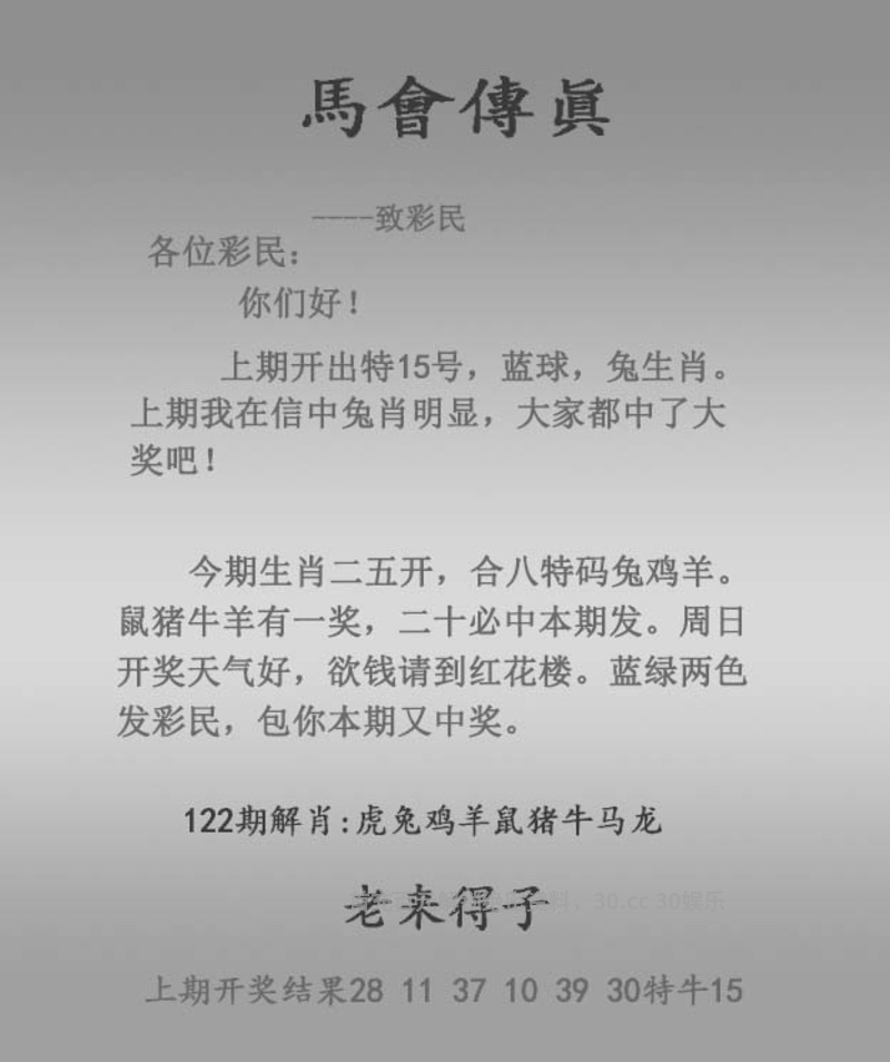 | 122期:马会传真解析: 今期生肖二五开,合八特码兔鸡羊 鼠猪牛羊有一奖,二十必中本期发 周日开奖天气好,欲钱请到红花楼 蓝绿两色发彩民,包你本期又中奖 老来得子 解析:今期生肖二五开,合八特码兔鸡羊,明肖兔鸡羊,鼠猪牛羊有一奖,二十必中本期发,明肖鼠猪牛,20狗,周日开奖天气好,欲钱请到红花楼,蓝绿两色发彩民,包你本期又中奖,蓝绿。 综合:兔鸡羊鼠猪牛狗虎马 |